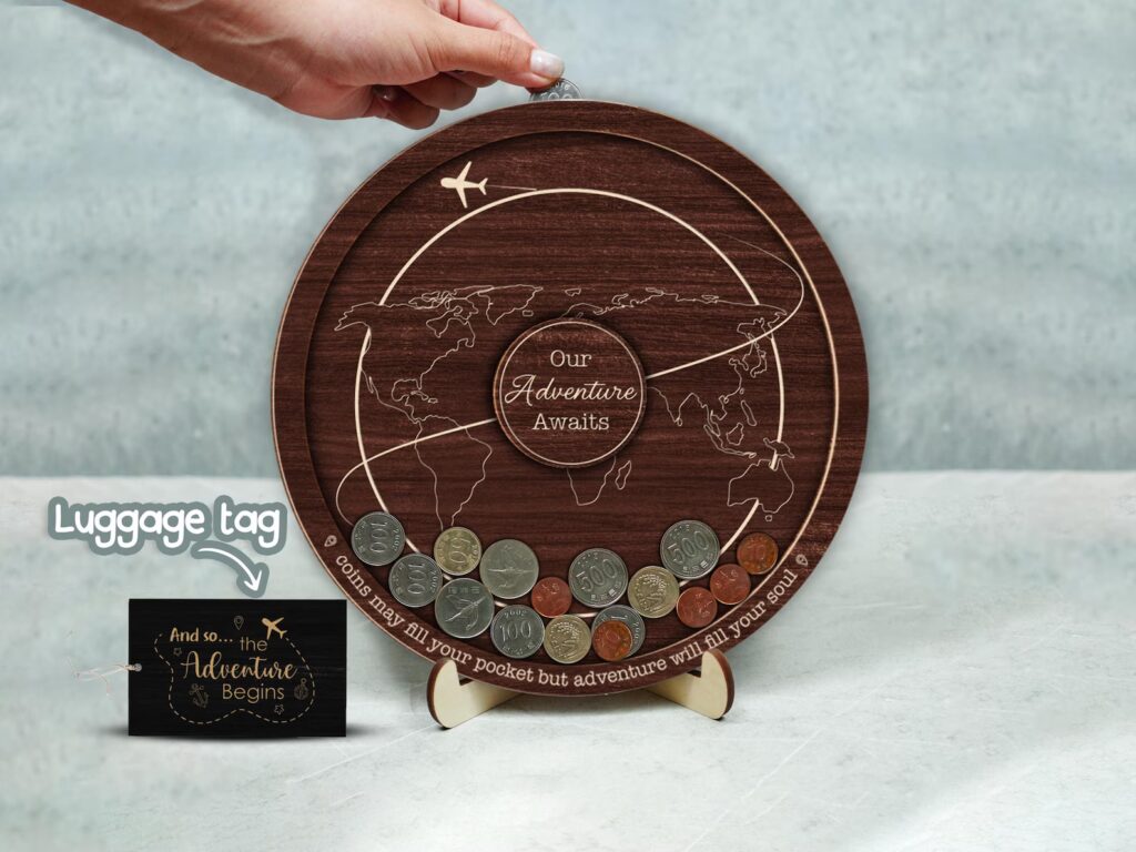 There is a magnet board to place all of the magnets you have collected over the years. And a coin collector to put in leftover coins from all the countries you have visited.