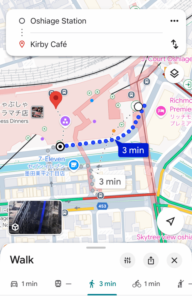 The closest station to Kirby Cafe Tokyo is the Oshiage Station. It is about a 3-minute walk.